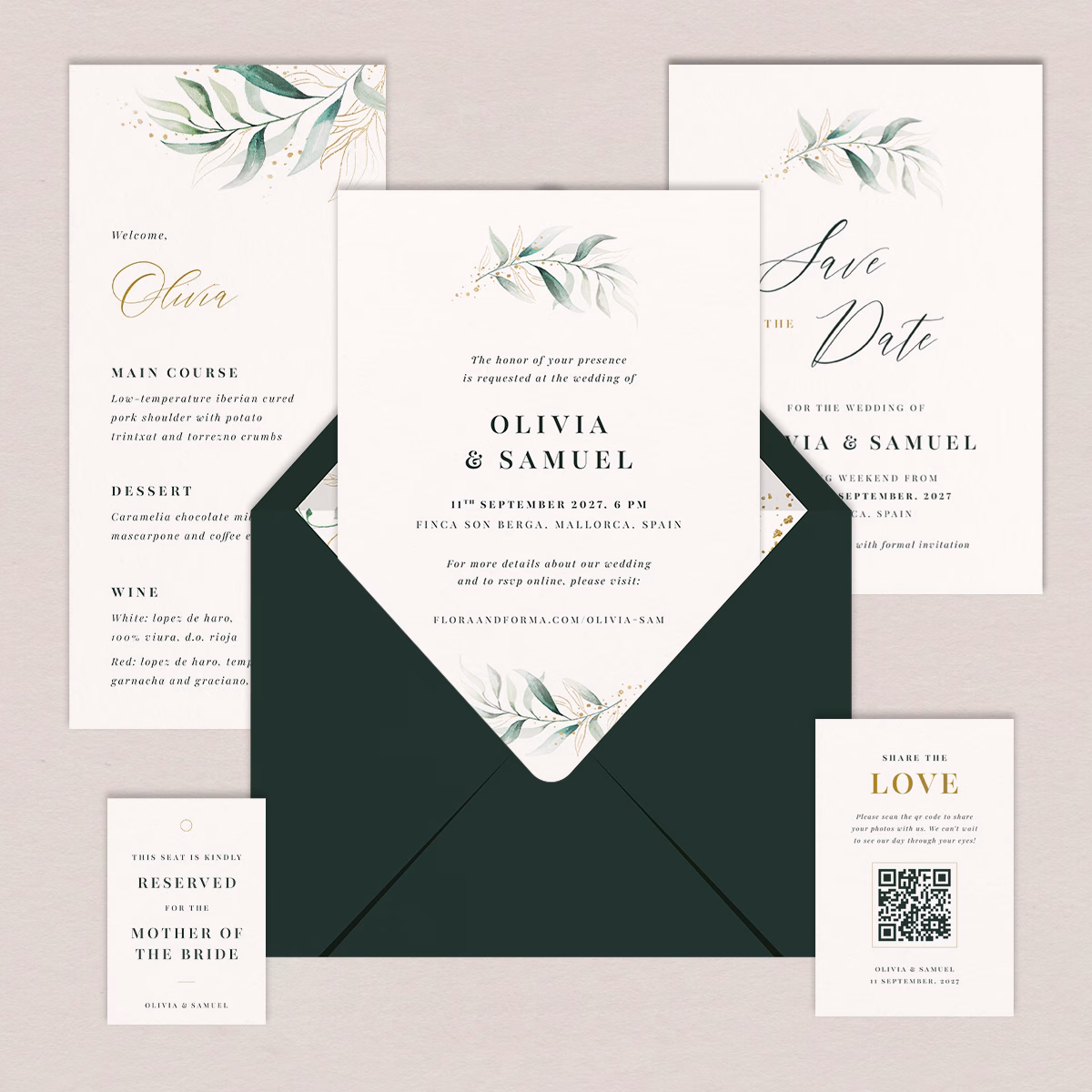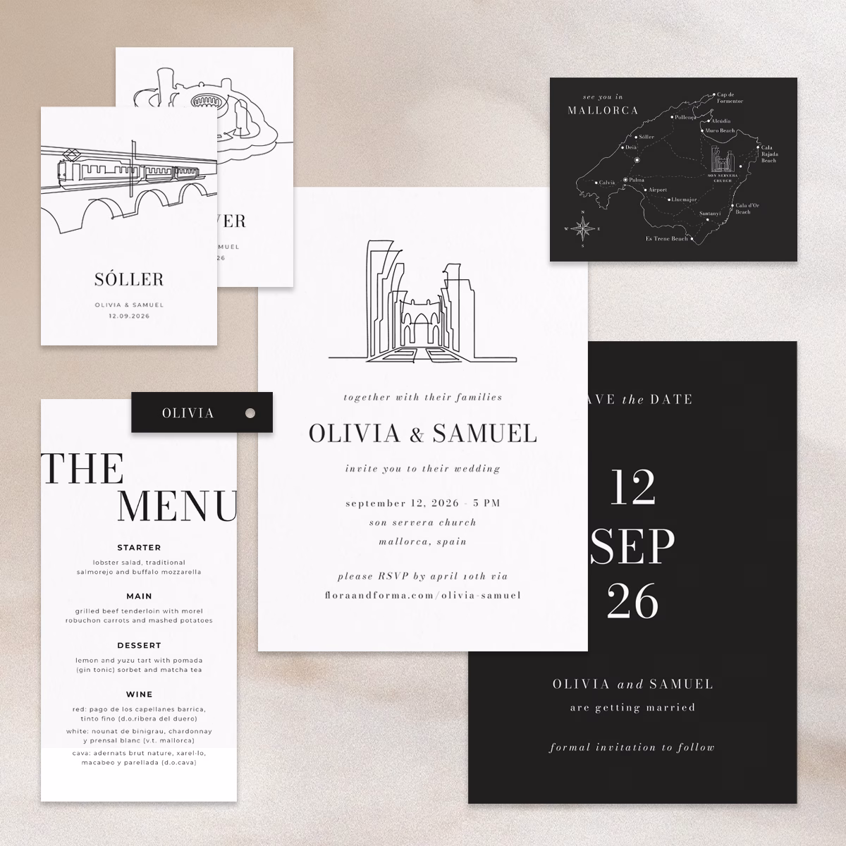 Browse our range of semi-custom stationery suites, featuring thoughtfully crafted designs that can be adapted to suit your wedding needs and reflect your vision.