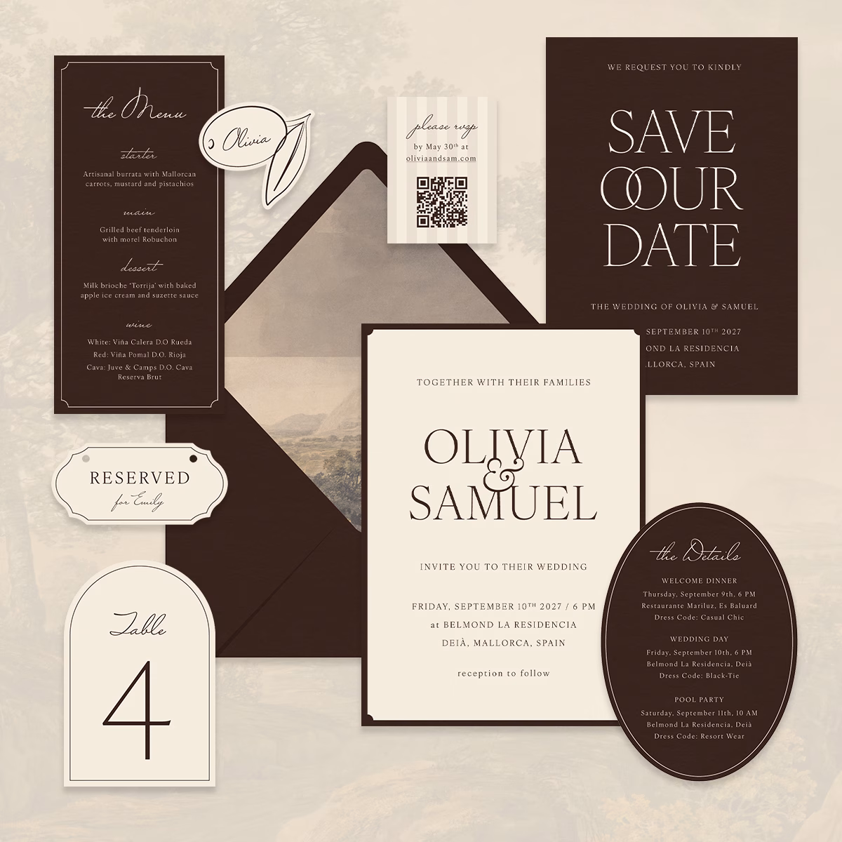 The beginning of your story, designed with care. We create a cohesive visual identity that carries through your entire celebration.