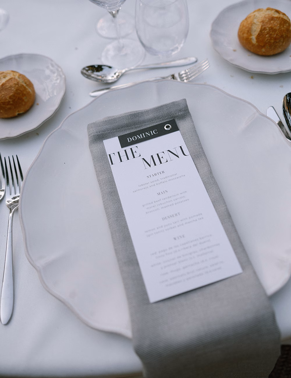 - Dinner Menu (10x21cm) + Name Tag (8×2,5cm)