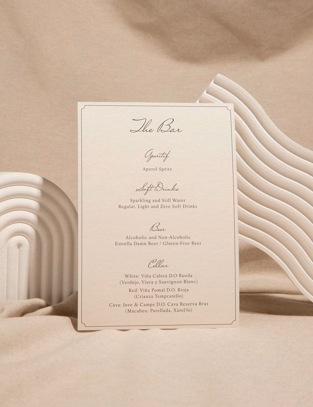 Tierra is a brown-and-cream stationery suite rooted in warmth and grace. A sharp, modern serif brings structure, while an old-style, ink-pen script adds character and a sense of history. Framed layouts elevate each piece, creating balance between softness and precision.