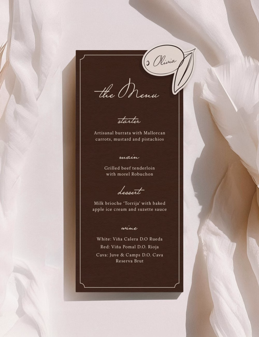 - Dinner Menu (10x21cm) + Name Tag (7,5x7cm)